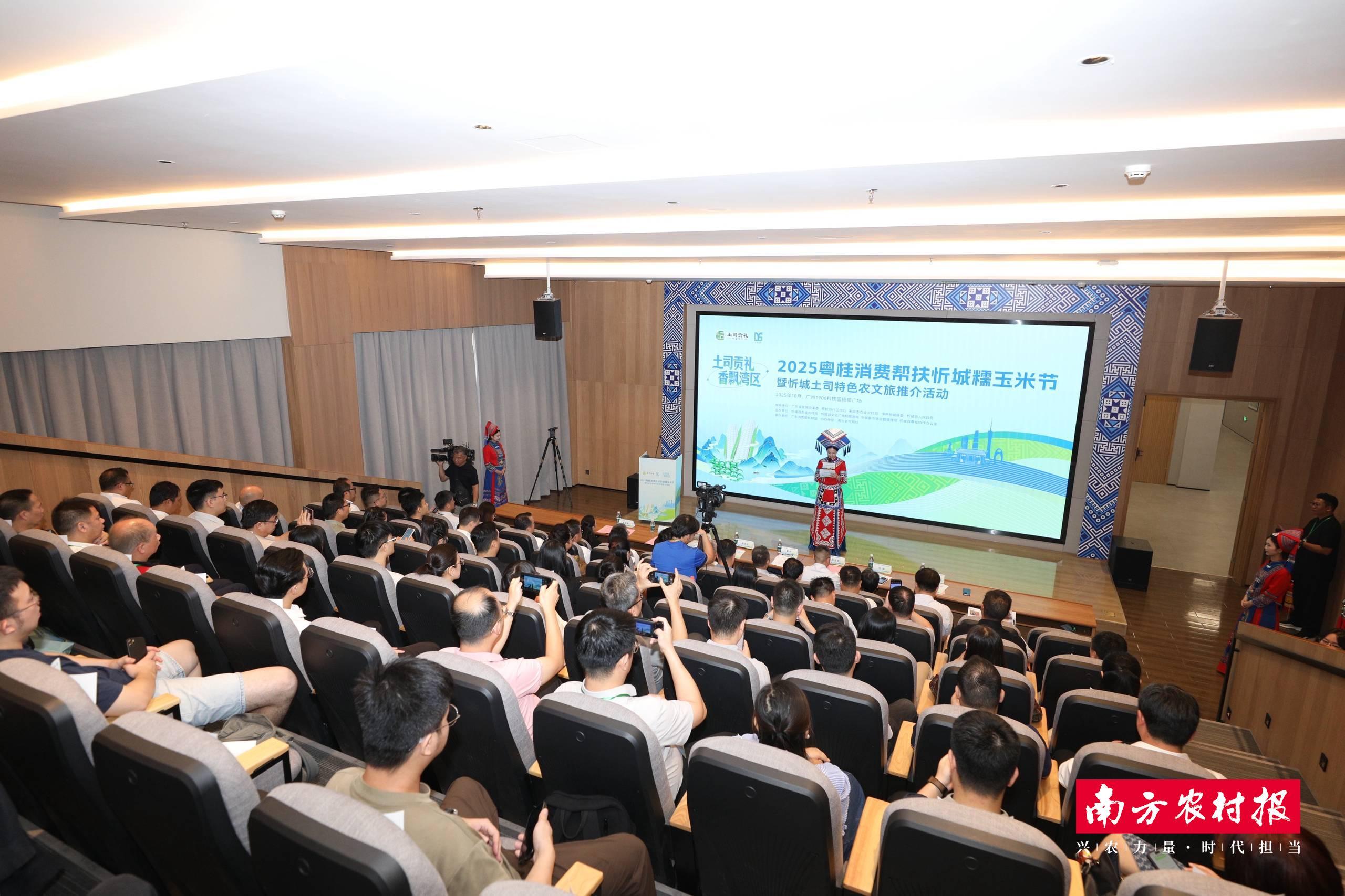 “土司贡礼 香飘湾区”2025年粤桂消费帮扶忻城糯玉米节暨忻城土司特色农文旅推介活动现场。