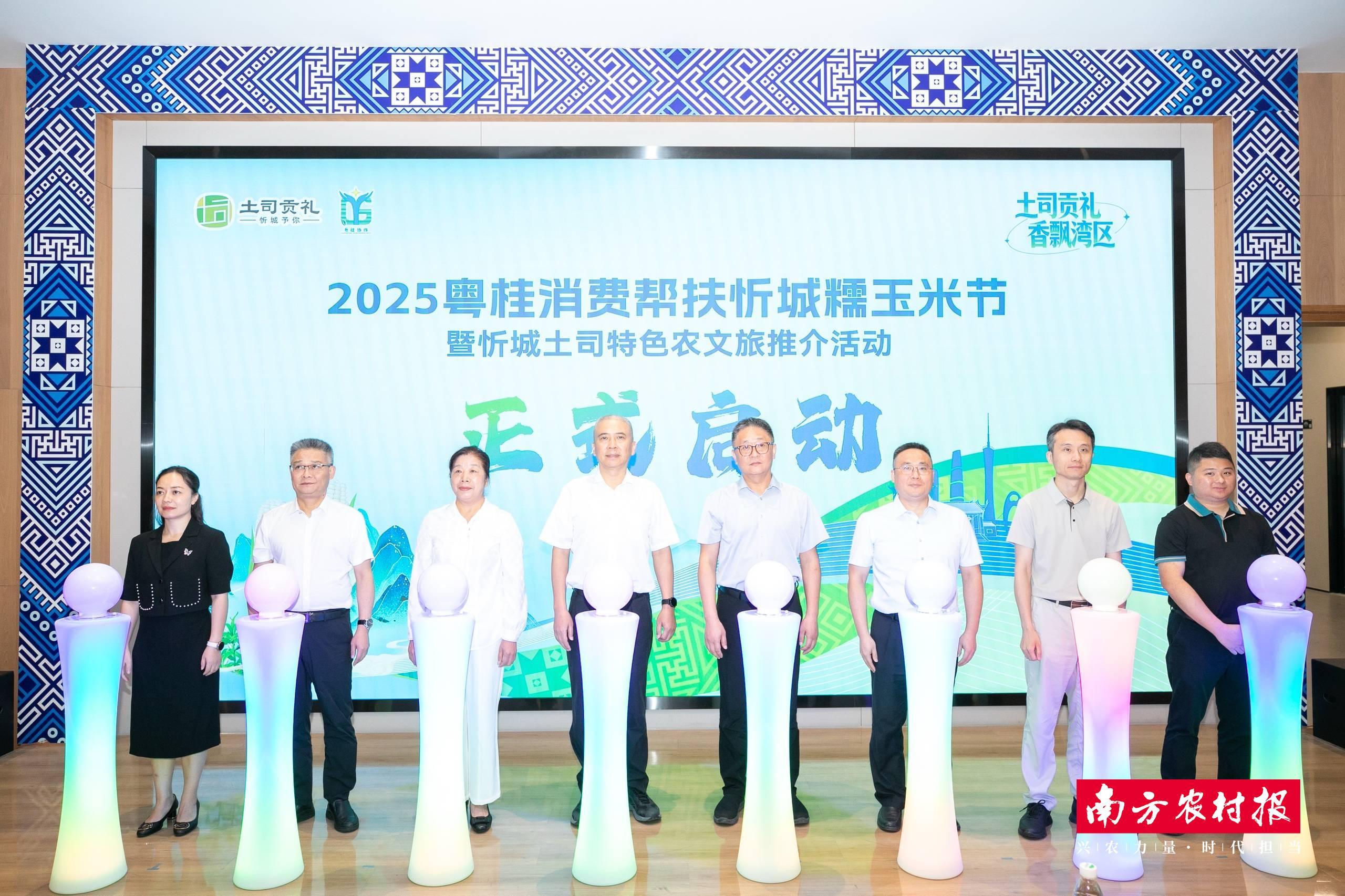 “土司贡礼 香飘湾区”2025年粤桂消费帮扶忻城糯玉米节暨忻城土司特色农文旅推介活动启动仪式。